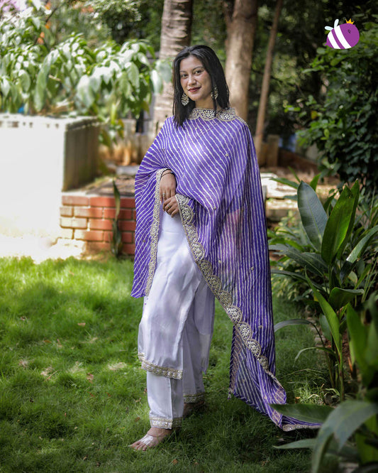 Lavender Dola Silk Kurta with Pant and Russian Silk Printed Dupatta