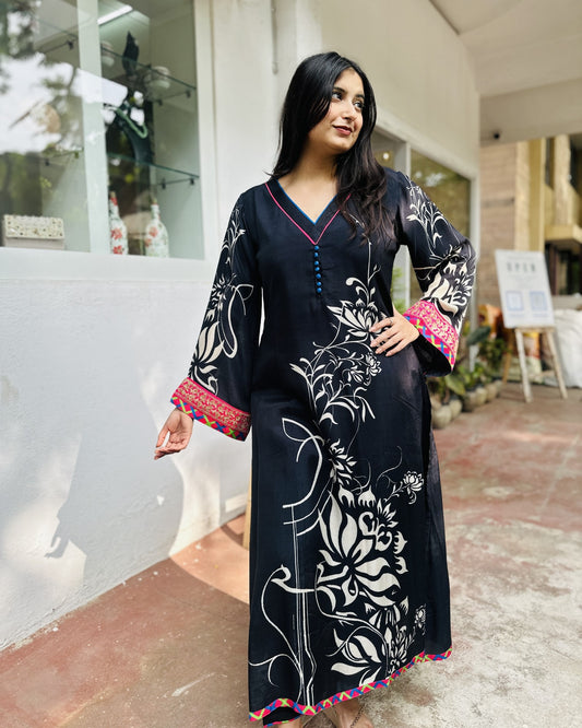 Black Muslin Premium Kurta with Pant