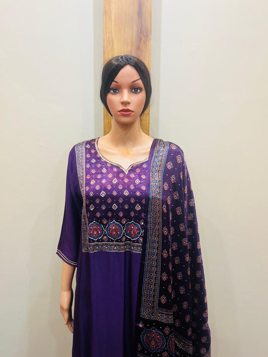 Lavender Dola Silk Heavy Embroidery Kurta with {ant and Sequin Work Dupatta