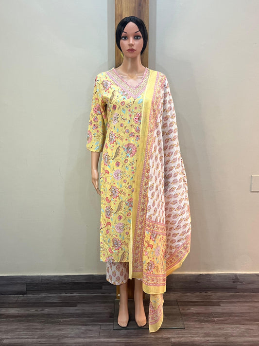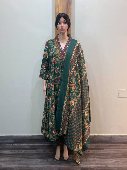 Dark Grey Embroidered Floral Cotton Dupatta Set