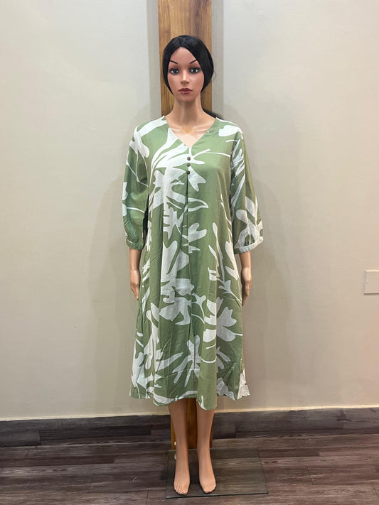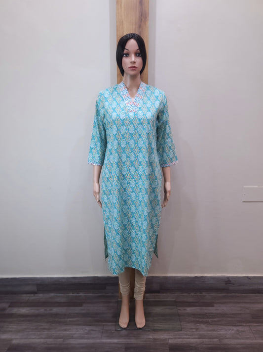 Green V Neck Cotton Kurti