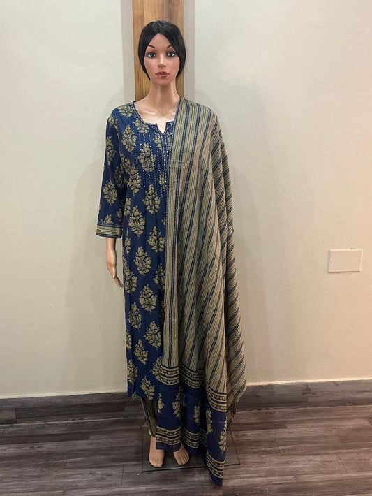 Blue white cotton anarkali dupatta set