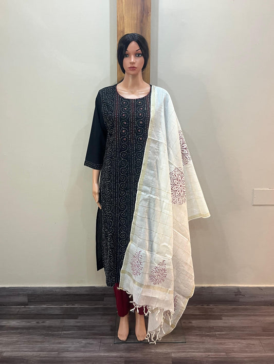 Black V neck dupatta set