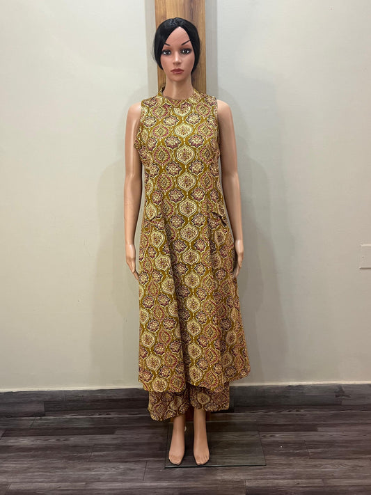 Mustard kalamkari sleeveless ps
