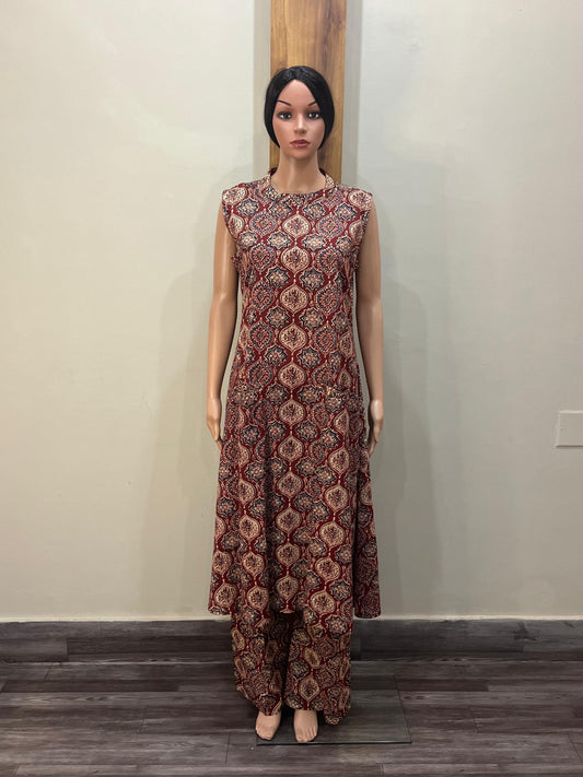 Rust kalamkari sleeveless ps