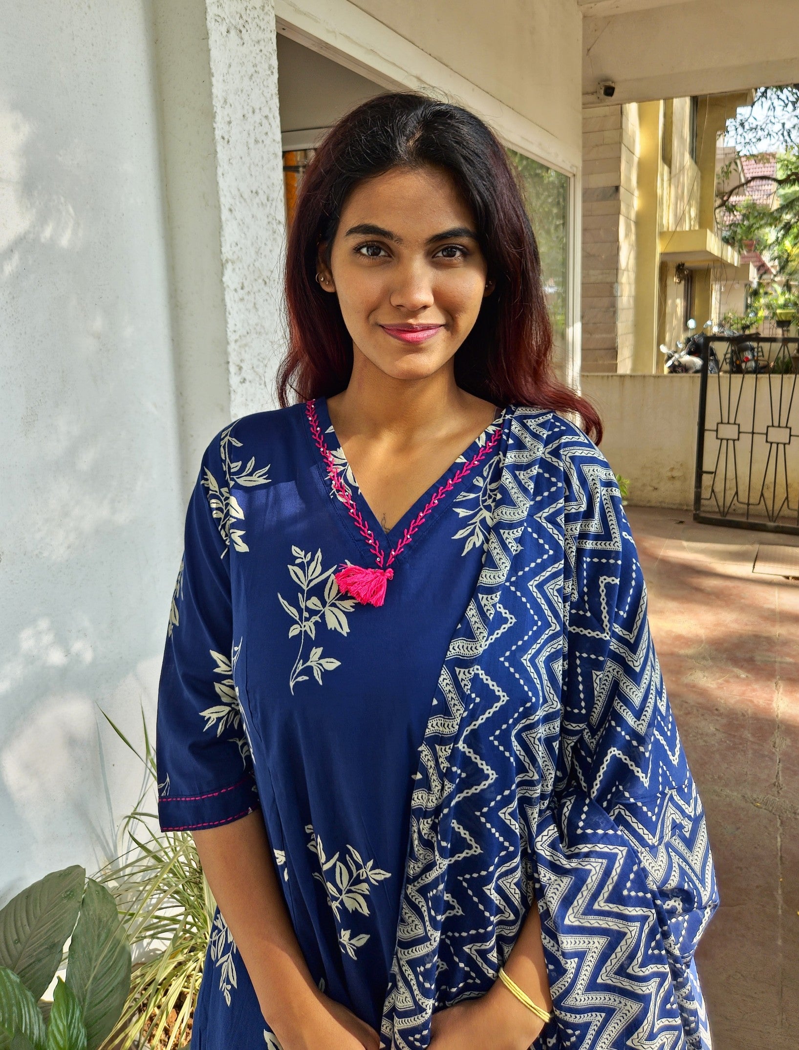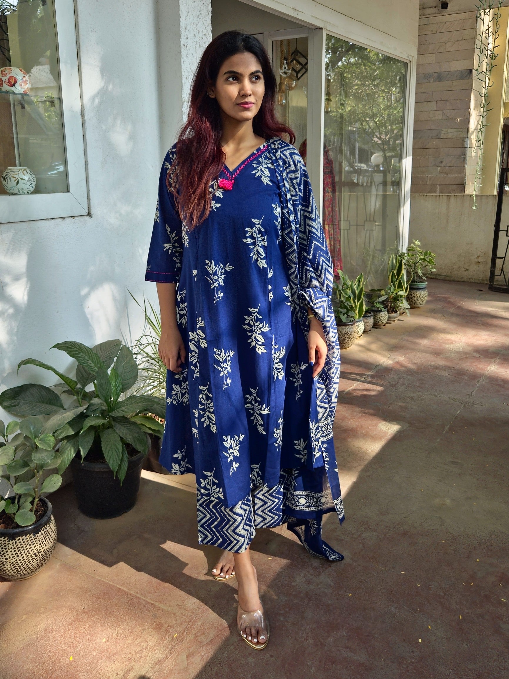 Navy Blue Cotton Dupatta Set