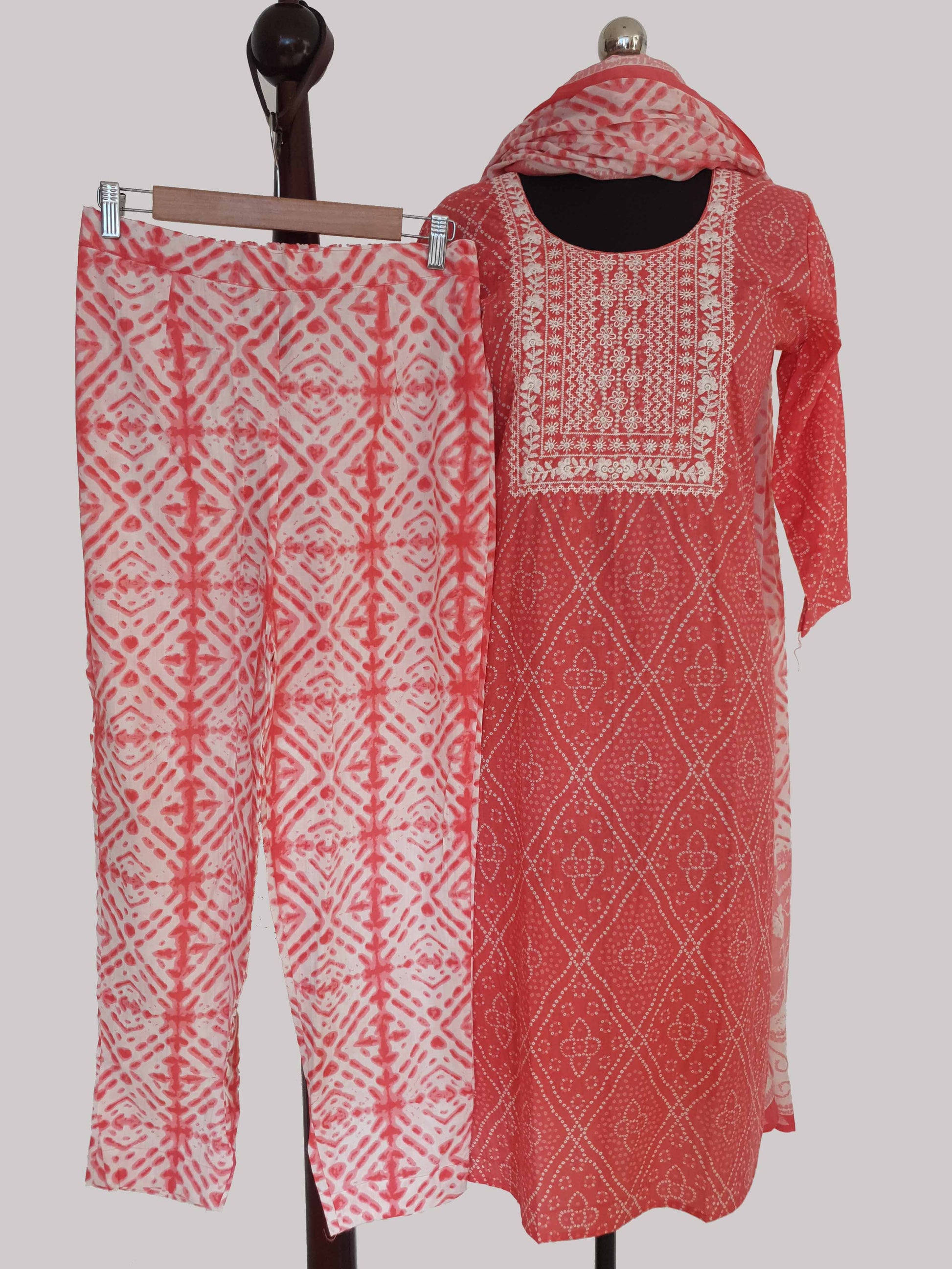 Pink Bandhini Print Cotton Kurti with Pant and Dupatta